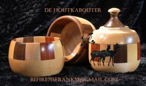 Houtdraaiwerk: decoratie voorwerpen, garen kommen (voor brei-en haakwerk) en kandelaars.